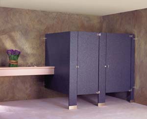 Available from Ampco Products: Euroline partitions with no sight lines and european concealed hardware.