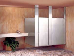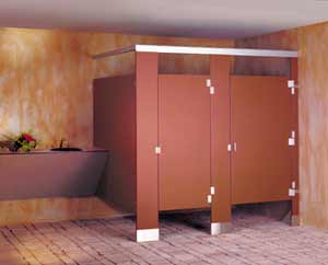 Available from Ampco Products: Euroline partitions with no sight lines and european concealed hardware.